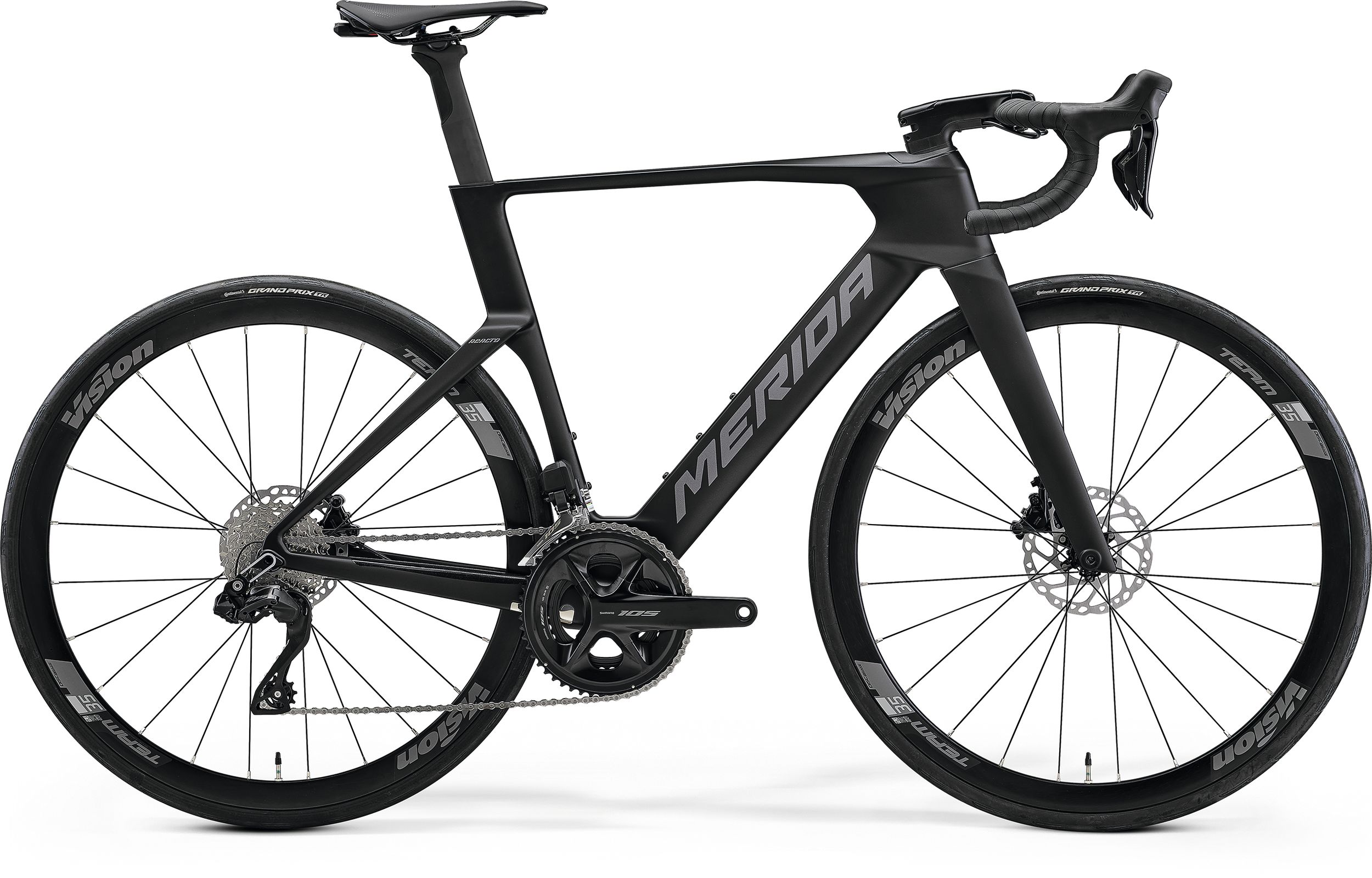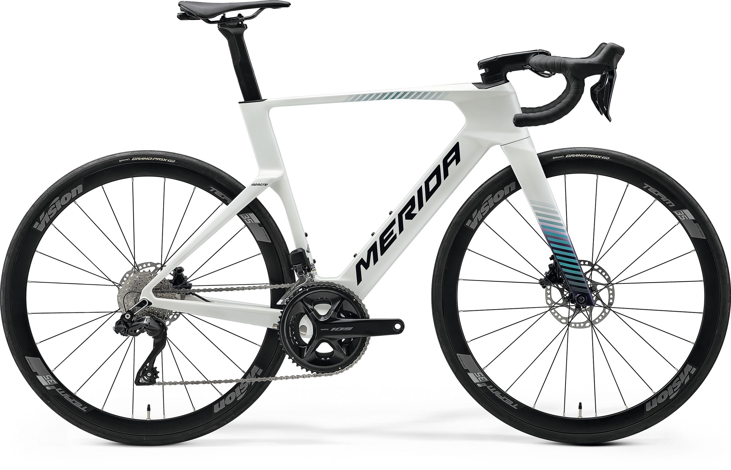 Le Merida Reacto 5000 hérite de l’ADN de la compétition grâce à son développement aux côtés de l’équipe Bahrain Victorious, présente sur les plus grandes courses du World Tour. Conçu autour d’un cadre carbone aérodynamique, ce vélo allie rigidité, légèreté et confort pour répondre aux exigences des coureurs professionnels.
